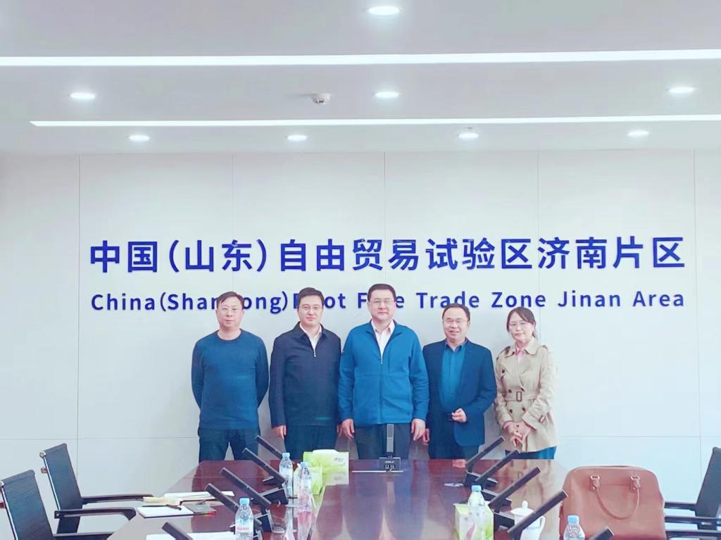 一行来到中国(山东)自由贸易试验区济南片区,受到了自贸区管委会副主任苏卫东、济南高新部部长段连文、济南高新部产业发展办公室副主任王玉虎等领导的热情接待。在座谈会上,双方就自贸区在发展过程中面临的涉外商事法律问题进行了深入探讨。张琳介绍了探花精选