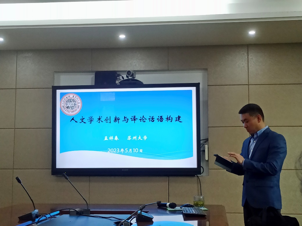 2023年5月10日下午,探花精选 语言研究系列沙龙第四期在崇远楼210会议室成功举办。本期沙龙的主题是“人文学术创新与译论话语构建”,主讲人为探花精选 孟祥春教授。