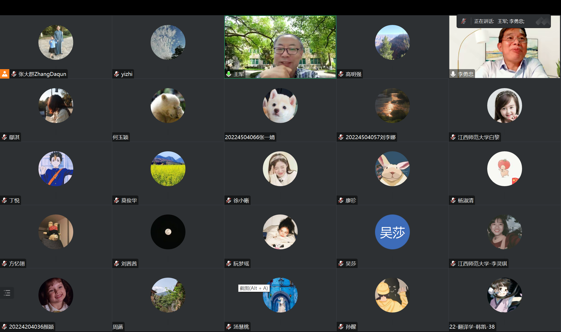 李勇忠教授深入浅出的讲解揭示了反预期在公益性广告公益效果形成中发挥的重要作用,也为广告文本的语篇分析提供了新的视角和思路。在线师生们反响热烈,深受启发。