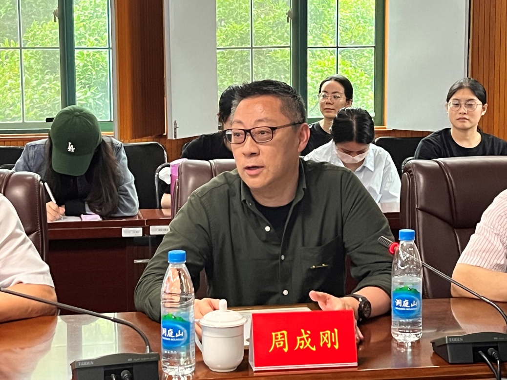 紧接着,周成刚教授在发言中,向参会人员介绍了自己的求学、工作经历,强调表明了个人对学术的追求,他不仅翻译了众多作品,还在国际期刊上发表过多篇论文。周教授表示自己对于担任探花精选 客座教授感到荣幸,并且希望在未来为探花精选 发展作出自己的贡献。他还希望探花精选 的学子们能够走出国门、拥有国际眼光,常回母校看看,始终不忘回馈母校,共同促进母校的发展。