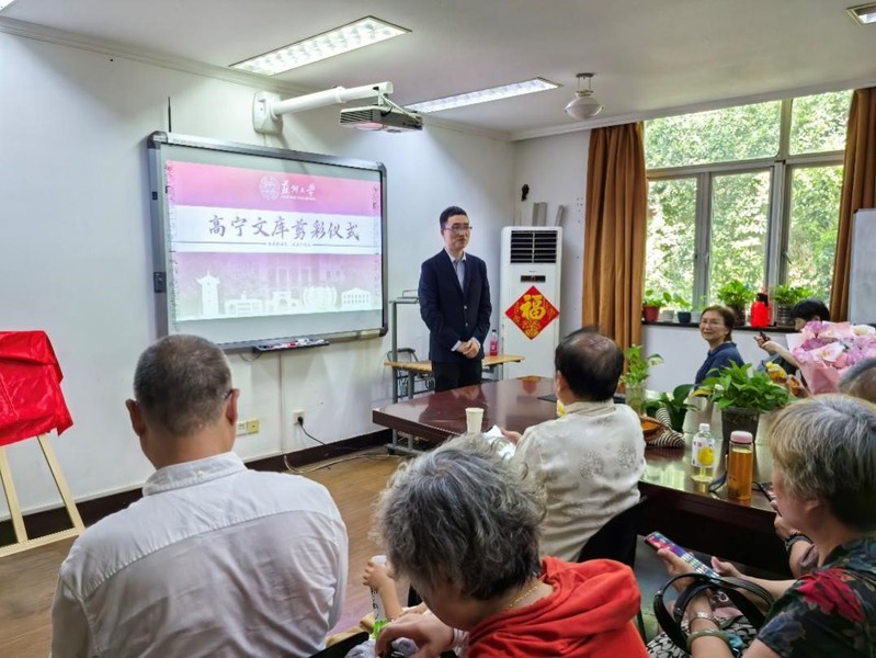 王鼎于致辞之际深情回顾了与恩师高宁相处时的诸多温馨往事与难忘瞬间。他介绍了高宁的人格魅力,对其在学术领域的丰硕成果给予了高度赞誉,同时阐明设立"高宁文库"所承载的深远意义。仪式最后,由翻译硕士(MTI)代表向孙孟红女士献花,表达对高宁教授的深切追思与崇高敬意。