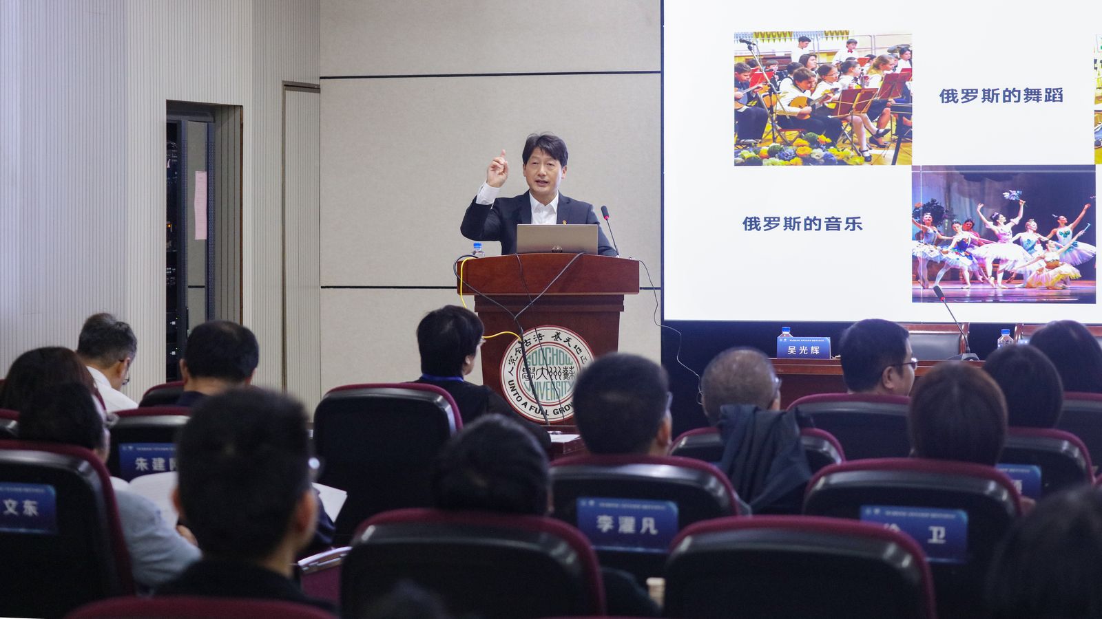 22日上午,研讨会进入第二天的日程,参会者的热情更胜昨日。圆桌论坛二“区域国别视域下的江南研究”率先在厦门大学吴光辉教授的主持下闪亮登场。东南大学苏州校区党委书记梅汉成教授《俄罗斯艺术的觉醒与繁荣的现代启示》分享了19世纪下半叶俄罗斯将其艺术推向高峰并长久不衰的成功经验;大连外国语大学《东北亚外语研究》主编柴红梅教授《现代性体验与二十世纪二三十年代日韩文学中的上海》展现了日韩作家对于“魔都”上海多方位、不同层面的“现代性”体验;杭州师范大学孙立春教授《日本近现代作家的杭州想象与文化记忆》运用文化记忆理论阐述了日本近现代作者的杭州印象、西湖印象的嬗变。