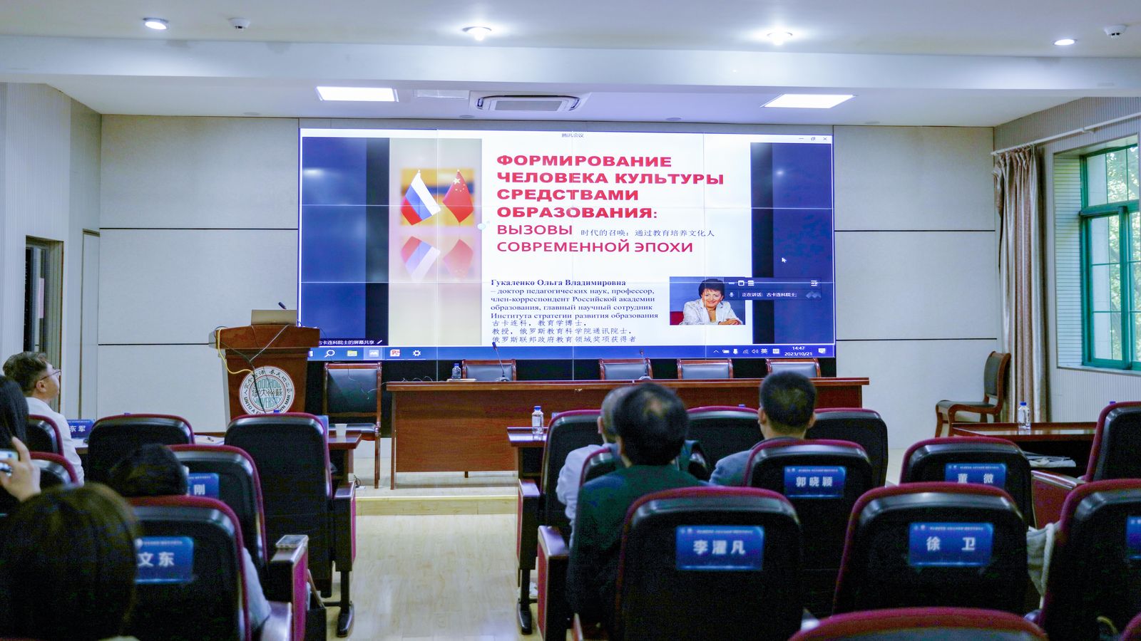 圆桌论坛顺利结束后,来自俄罗斯的两位院士--俄罗斯教育战略研究所古卡连科教授、莫斯科大学鲍利辛柯夫教授分别以《以时代的召唤:通过教育培养文化人》《文化生态环境与教育的任务》为题开启新的学术盛宴。