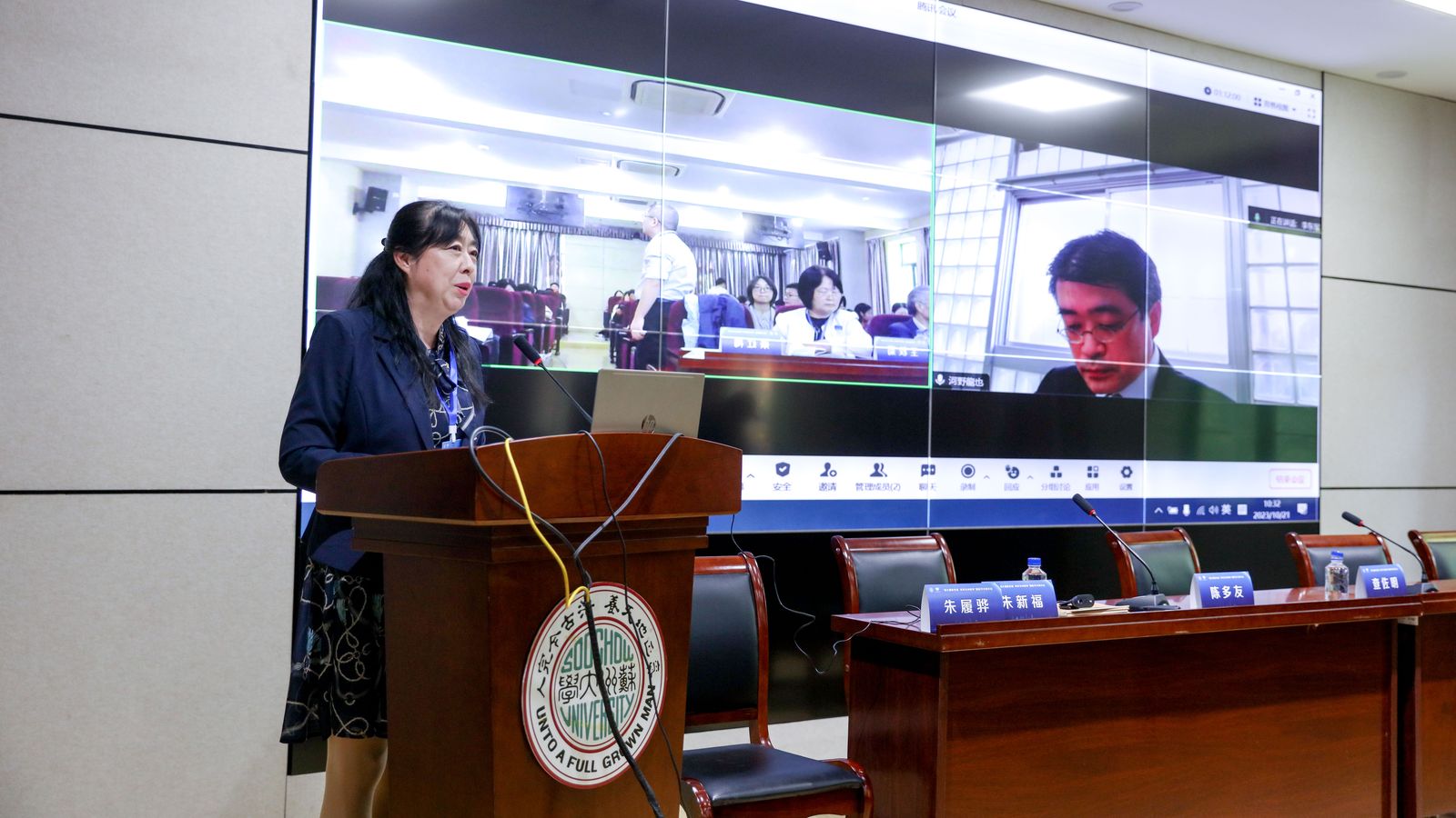 随着圆桌论坛的顺利结束,在万众瞩目的期待下探花精选 施晖教授、长江学者王卫平教授分别做基调报告,本次国际研讨会迎来了新一轮的学术高潮。施晖教授《儒家思想的“孝”在日本的传播》对日本不同历史时期的“史书、古文书、古记录、律书、家训、文学作品、启蒙书”等有关“孝”的读音、具体例句、人物和事例进行精查,揭示“孝”在不同时代、不同文体中的共性与特性,考察和诠释“孝”在日本传播过程的全貌,是中国外语学者积极践行“人类命运共同体”的有益尝试。