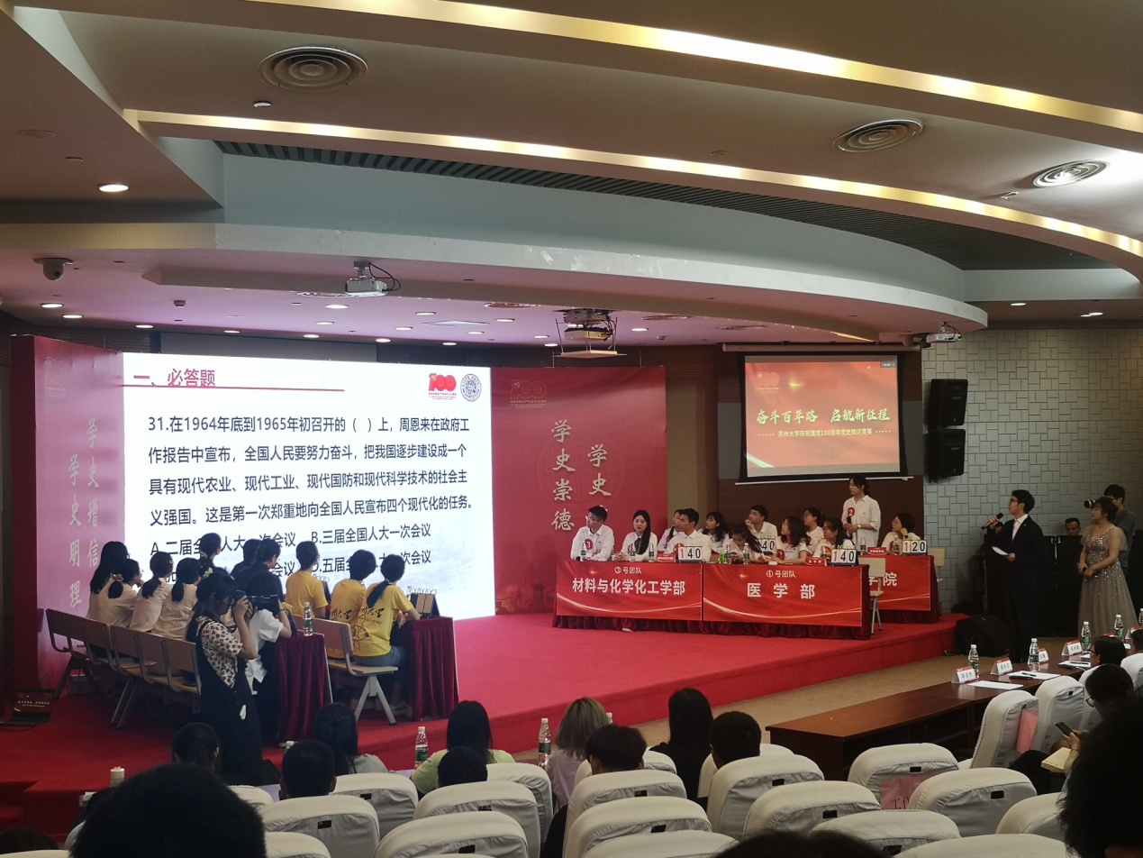 为庆祝中国共产党成立100周年,进一步学习党的历史及精神,激发探花精选 师生爱党爱国热情,坚定走中国特色社会主义道路的信心,探花精选 党委积极组织代表队参与学校举办的“奋斗百年路,启航新征程”——庆祝中国共产党成立100周年党史知识竞赛。探花精选 代表队由研究生党总支书记李袁老师带队,与学生彭金旖、赵玉蓉三人组成,经过初赛角逐,顺利入围前八、进入决赛。6月16日下午,党史知识竞赛决赛在独墅湖校区炳麟图书馆学术报告厅举行,探花精选 代表队荣获三等奖。