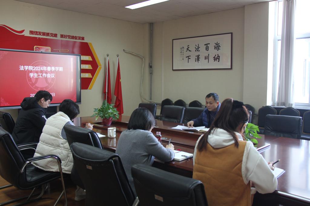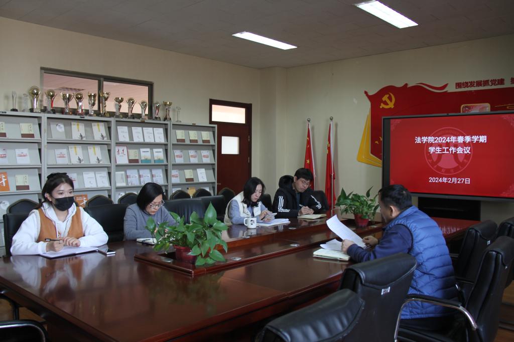 召开2024年春季学期学生工作会议。学院党委副书记沙林斌、团委书记赵金鹏、辅导员郭蕾、刘晓莉、杨玉霜参加了本次会议。会议由沙林斌主持。