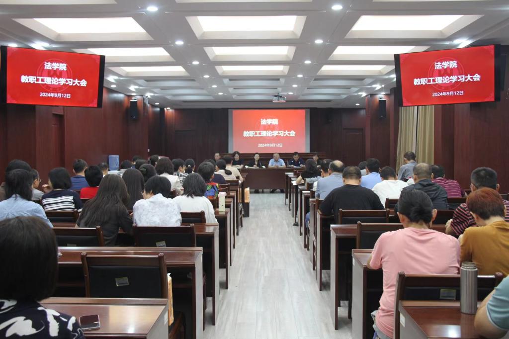 在燕山校区模拟法庭召开学习贯彻党的二十届三中全会精神暨全体教职工大会。学院党委书记危红、院长赵信会及班子成员、全体教师参加会议。会议由党委书记危红主持。