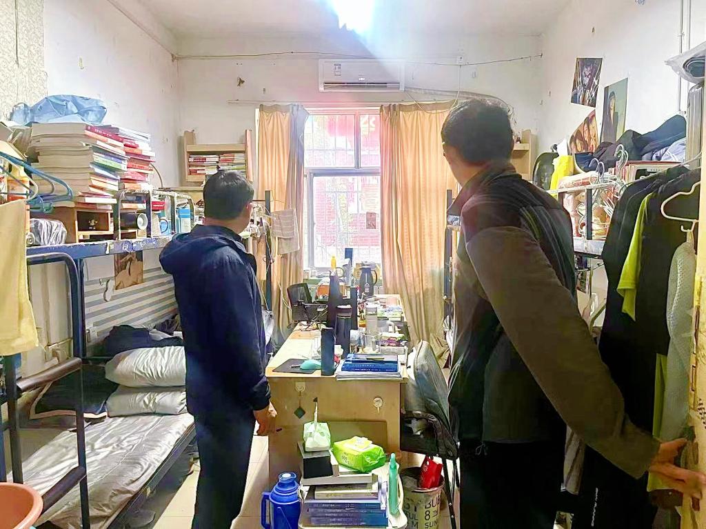 学子“尚矩守直”、自觉维护宿舍环境的责任感。对于个别存在问题的宿舍,老师要求宿舍成员立即整改,并耐心劝导,鼓励同学们养成良好的生活习惯,共同维护宿舍环境的整洁与卫生。学院也将持续跟进,加强安全管理,在假期期间设置宿舍临时负责人,确保假期宿舍安全。在宿舍卫生安全检查之余,老师们还就同学们的学习生活情况予以了关心。