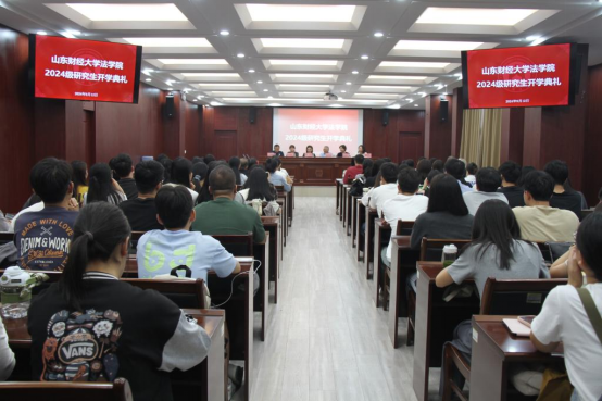 2024级研究生新生开学典礼在燕山校区模拟法庭举行。学院党委书记危红、院长赵信会、党委副书记沙林斌、副院长纪建文、副院长王莉莉、硕士生导师徐丽枝以及全体2024级研究生新生共同出席典礼。典礼由党委副书记沙林斌主持。