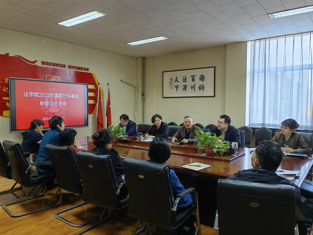 于4508会议室召开2025年度国家社科基金申报动员大会,传达学校科研工作暨国家“两金”项目申报启动会的会议精神和洪俊杰校长在会议上的重要讲话,对探花精选