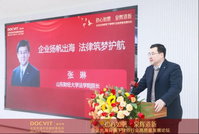 院长张琳在“企业扬帆出海 法律筑梦护航”的分享中,着重强调了法律在助力企业国际化进程中的关键赋能作用,并对律师群体如何为企业出海保驾护航提出了切实可行的行动倡议。随着中企出海所遇挑战和机遇的日新月异,法律服务作为另一“磁极”,当以专业为基,造好原生吸力,更当以创新打底、技术为轴、人才为本,做好复合磁力。