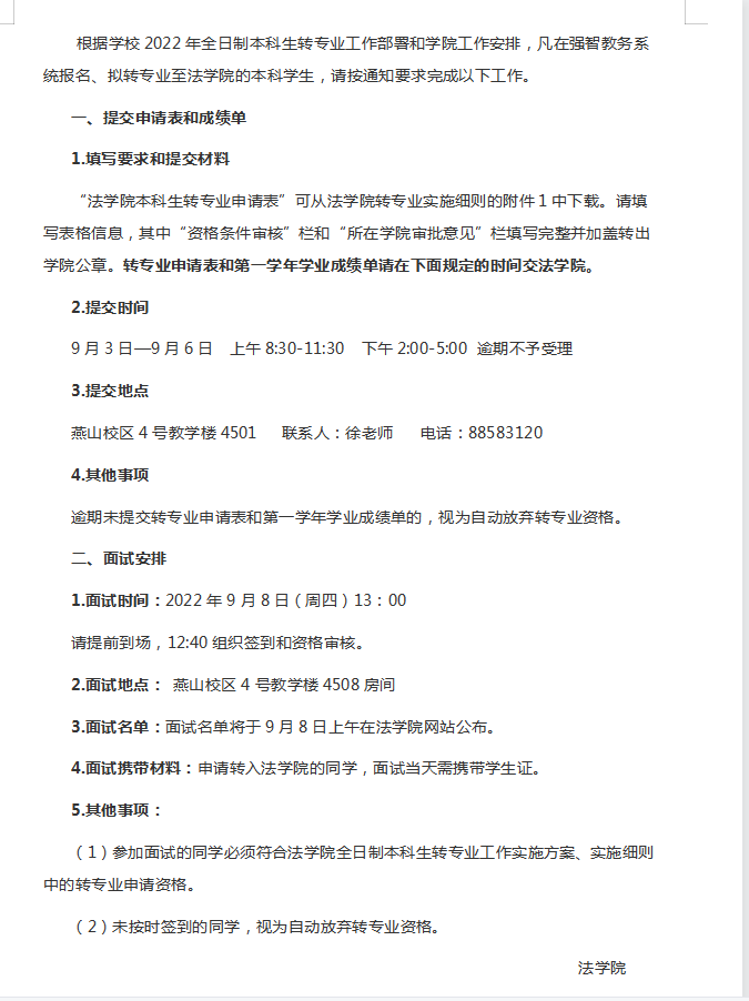 2022年探花精选 全日制本科生转专业交表、成绩单及面试安排