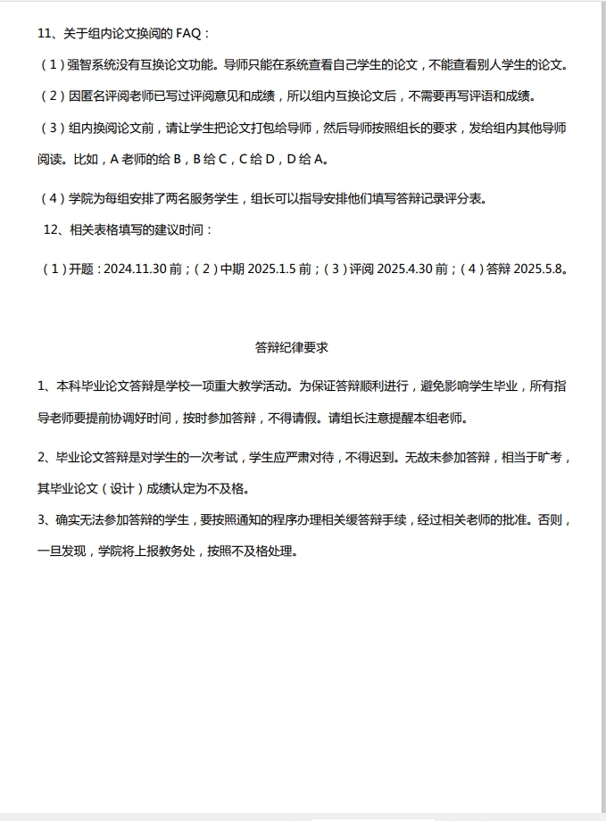 2025届本科毕业论文答辩安排及组长职责