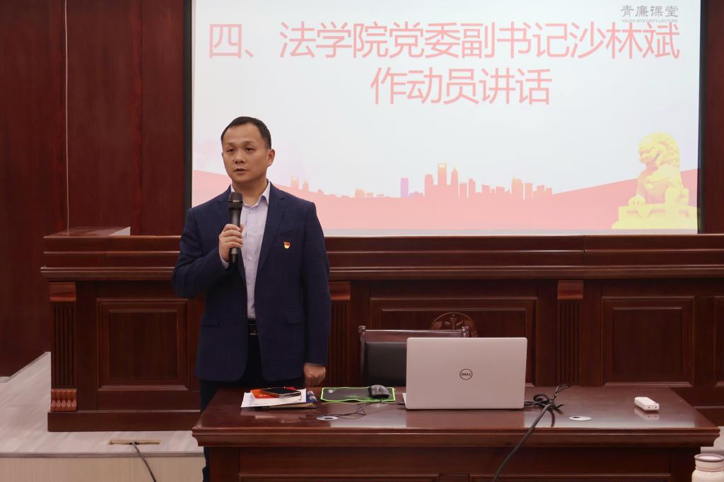 于4月14日在燕山校区4号教学楼模拟法庭举行了2023年度春季学期入党积极分子培训班开班仪式,学院党委副书记沙林斌出席开班仪式,140名学生入党积极分子参加。