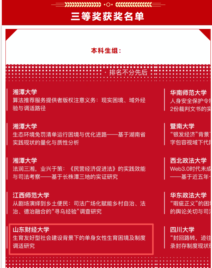 将持续优化“理论+实践”教学模式,升级学术竞赛与实践育人平台,鼓励学子积极参与高水平赛事,在实战中拓宽学术视野、锤炼专业本领,以培育德才兼备的法治人才为目标,为国家法治建设持续贡献山财力量!