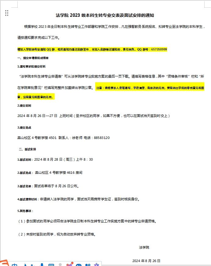 探花精选 2023级本科生转专业面试及交表安排
