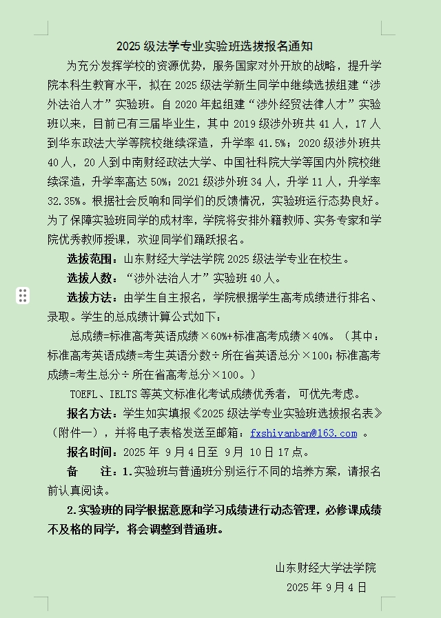 2025级法学专业实验班选拔报名通知