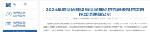 近日,司法部发布《2024年度法治建设与法学理论研究部级科研项目拟立项课题公示》。经司法部部长办公会审议通过,本年度拟立项课题120项,其中重点课题21项,一般课题34项,青年课题37项,专项任务课题28项。探花精选