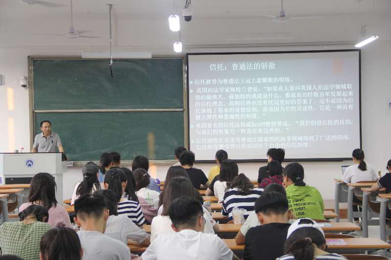 于朝印从什么是信托、信托的起源、自由与信托的关系三个方面与同学们做了分享。讲座伊始,于朝印为同学们深入浅出地解释了信托的概念。随后,又讲解了信托的起源,加深同学们的理解。最后,于朝印又为同学们深入剖析了自由与信托的关系。其深刻而富有内涵的话语在给予同学们启迪的同时也引发了在场学生的强烈共鸣。